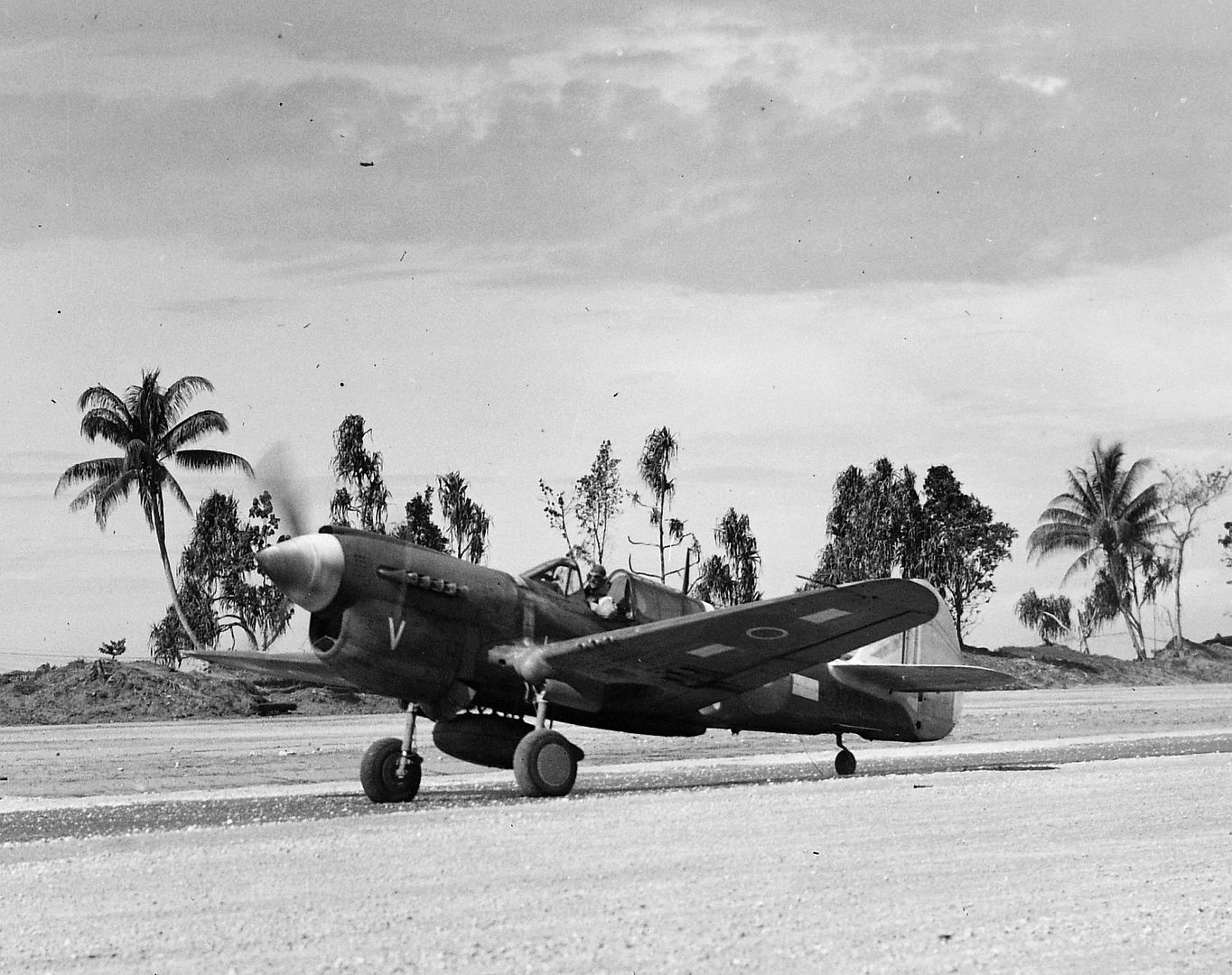 No. 18 Squadron Kittyhawk on the runway at Torokina, Bougainville.