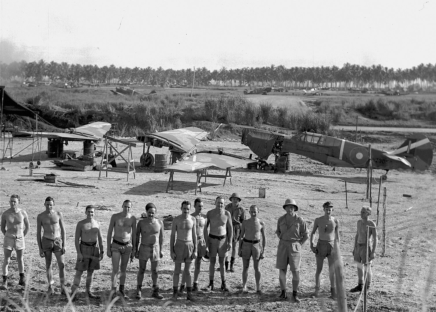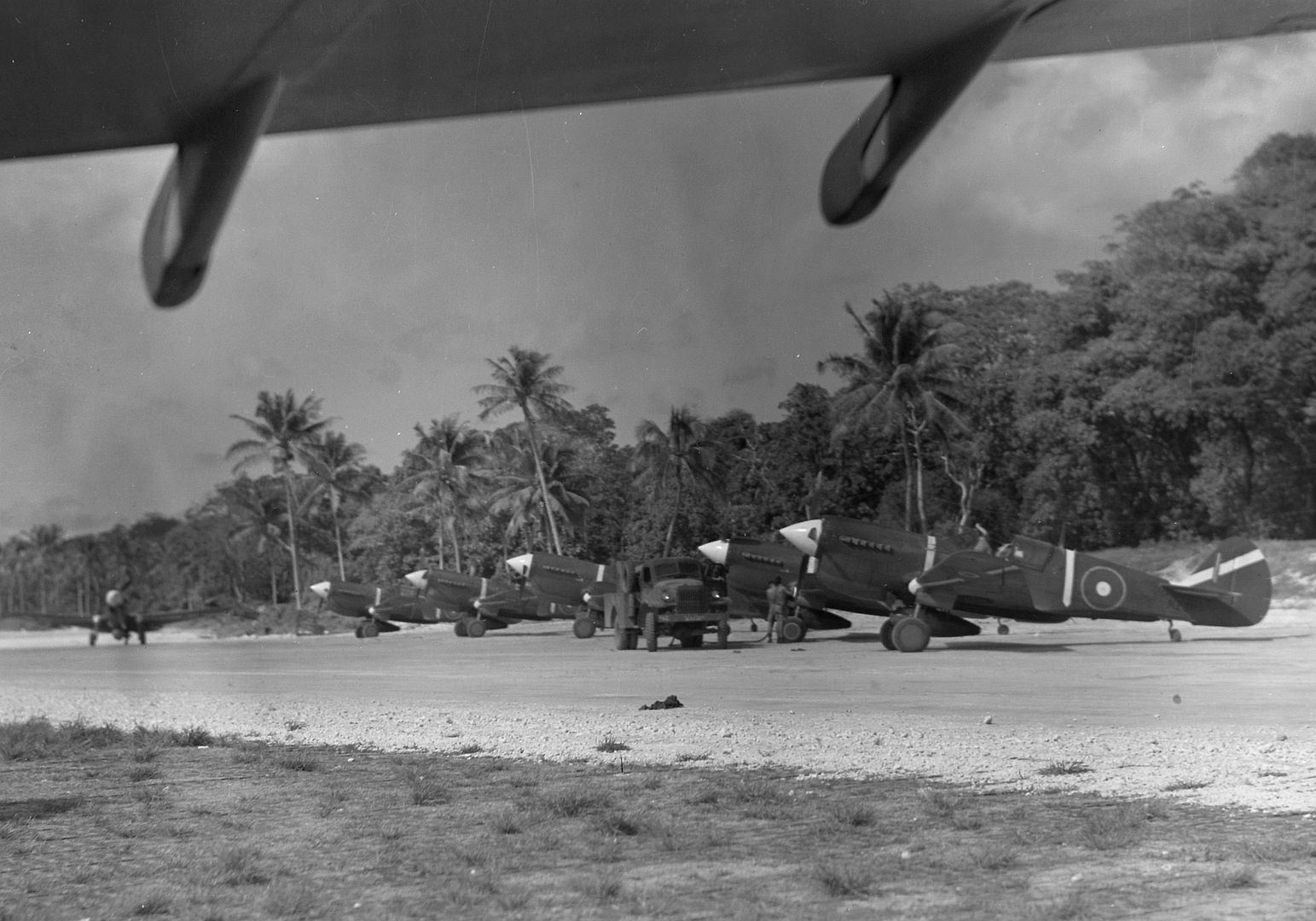 Marshalling No. 14 Squadron Kittyhawks into position on the aerodrome at Norfolk Island.
