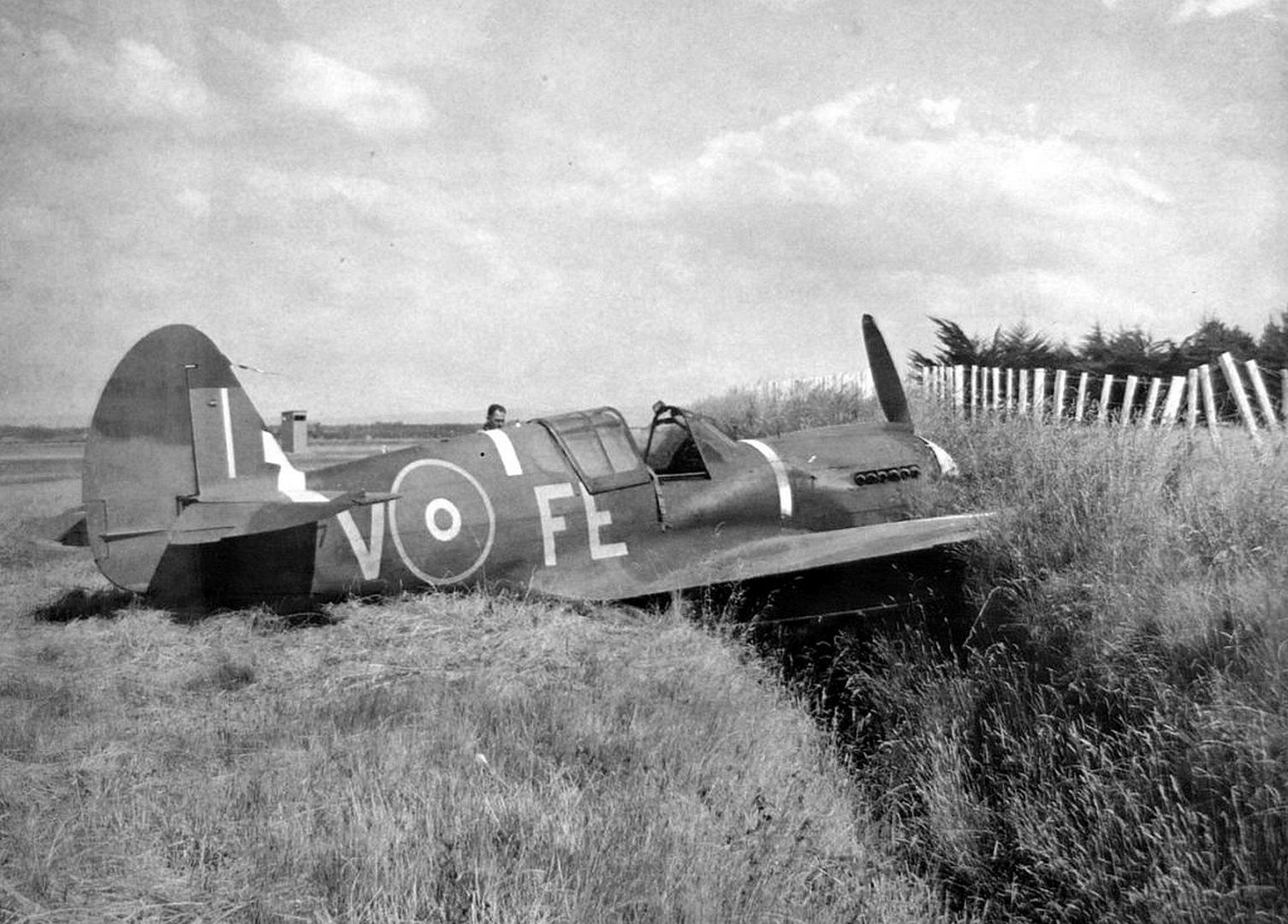 P-40E NZ3027 FE-V in a ditch at Ohakea after a taxiing accident on the 10th of January 1944