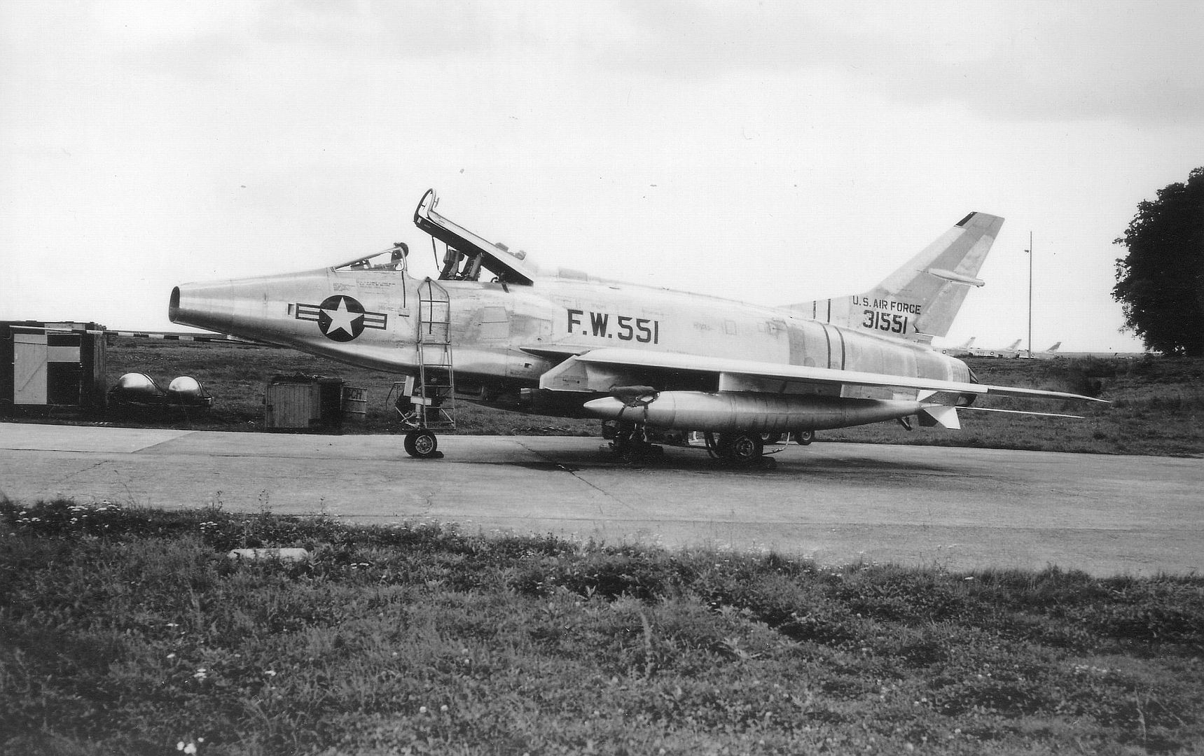Below 53-1551,served with Detachment 1 of the 7407th Support Squadron, 7499th Support Group.crashed near Neidenbach, Germany on 1 October 1956, the pilot ejected safely.