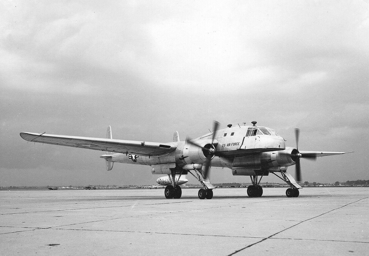 Powerplant: 2 × Pratt & Whitney R-4360 Wasp Major radial engines, 3,250 hp (2,420 kW) each for takeoff